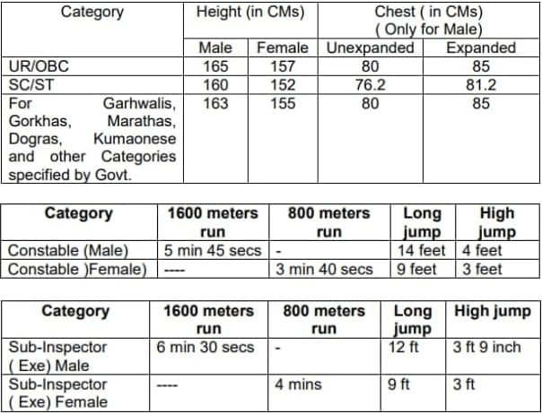 | Constable | उम्मीदवार किसी भी मान्यता प्राप्त शैक्षणिक संस्थान से 10वीं कक्षा या इसके समकक्ष उत्तीर्ण होना अनिवार्य है। |