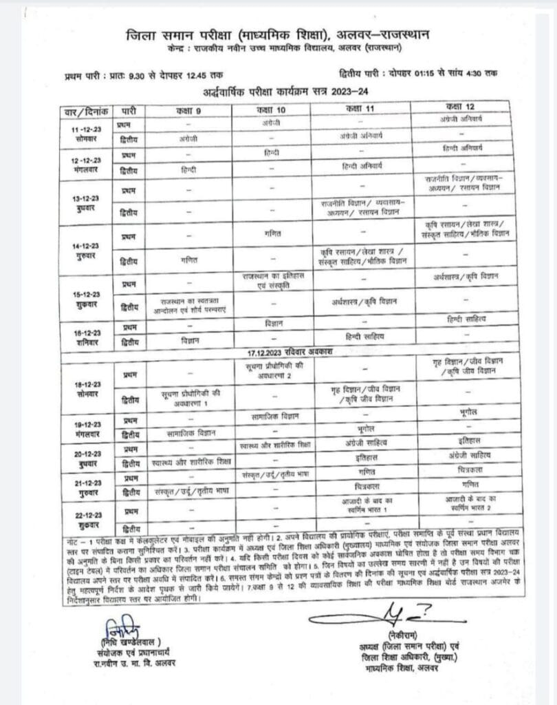 | Alwar Half Yearly Time Table 2023-24 | Click Here |