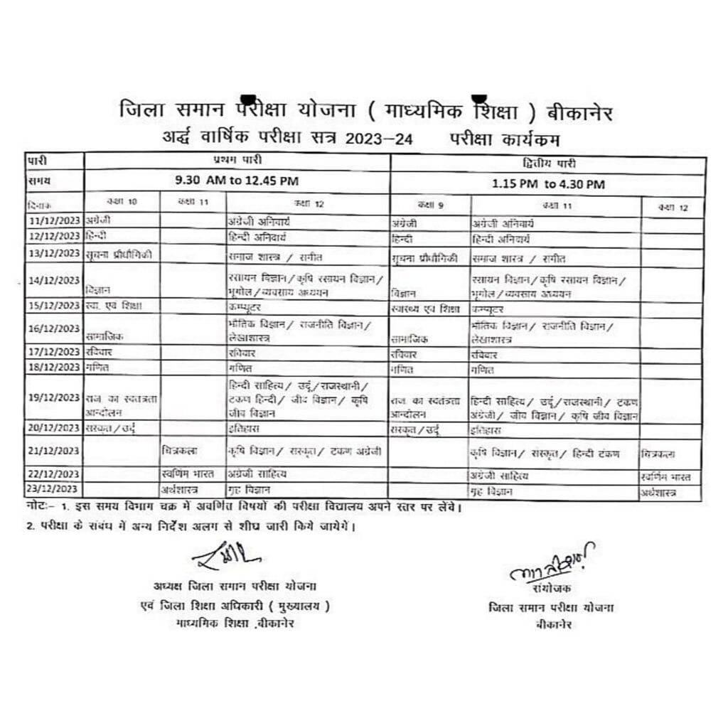 | Bikaner Half Yearly Time Table 2023-24 | Click Here |