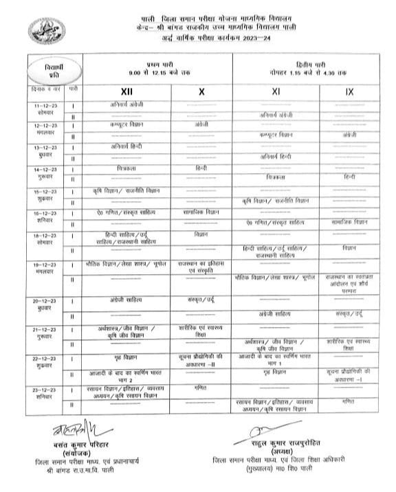 | Pali Half Yearly Time Table 2023-24 | Click Here |
