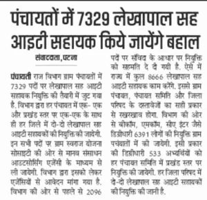 प्रत्येक ग्राम पंचायत मे एक-एक लेखापाल सह आई.टी सहायक की भर्ती की जायेगी, प्रत्येक प्रखंड मे एक-एक लेखापाल सह आई.टी सहायक की भर्ती की जायेगी और जिला स्तर पर कुल दो-दो लेखापाल सह आई.टी सहायक की भर्ती की जायेगी।