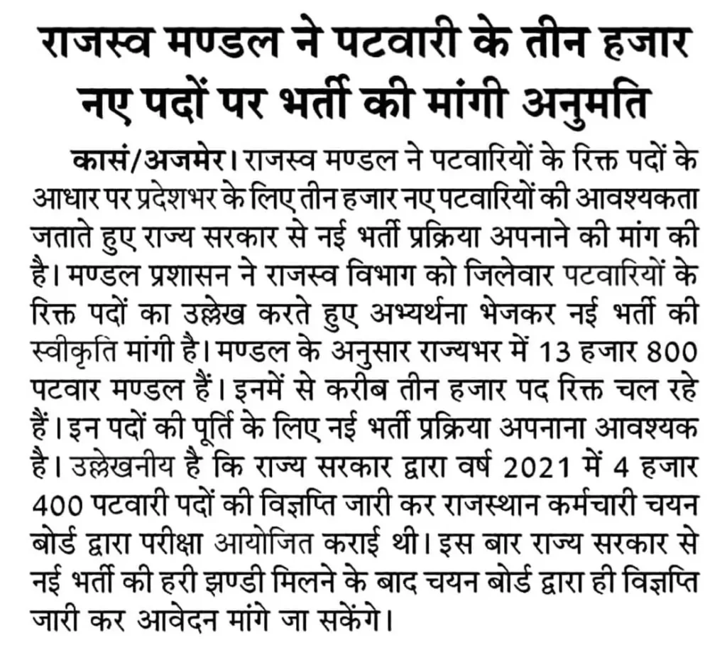 Rajasthan Patwari Recruitment 2024 Latest News